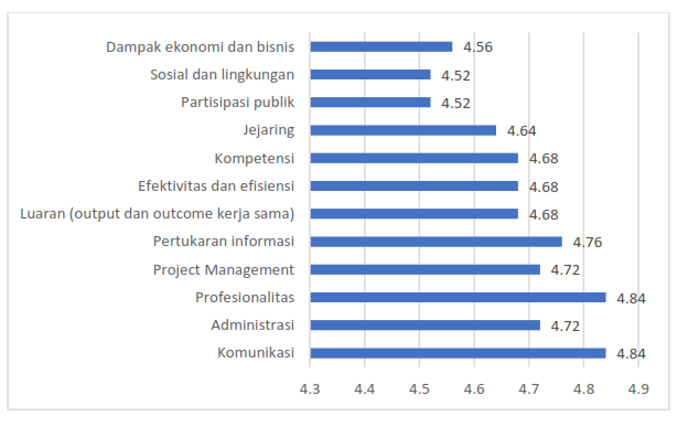 Dengan menggunakan skala 1-5, pengukuran mencakup kepuasaan pemangku kepentingan secara keseluruhan dan penilaian mereka terhadap setiap dimensi kepuasan yang relevan.