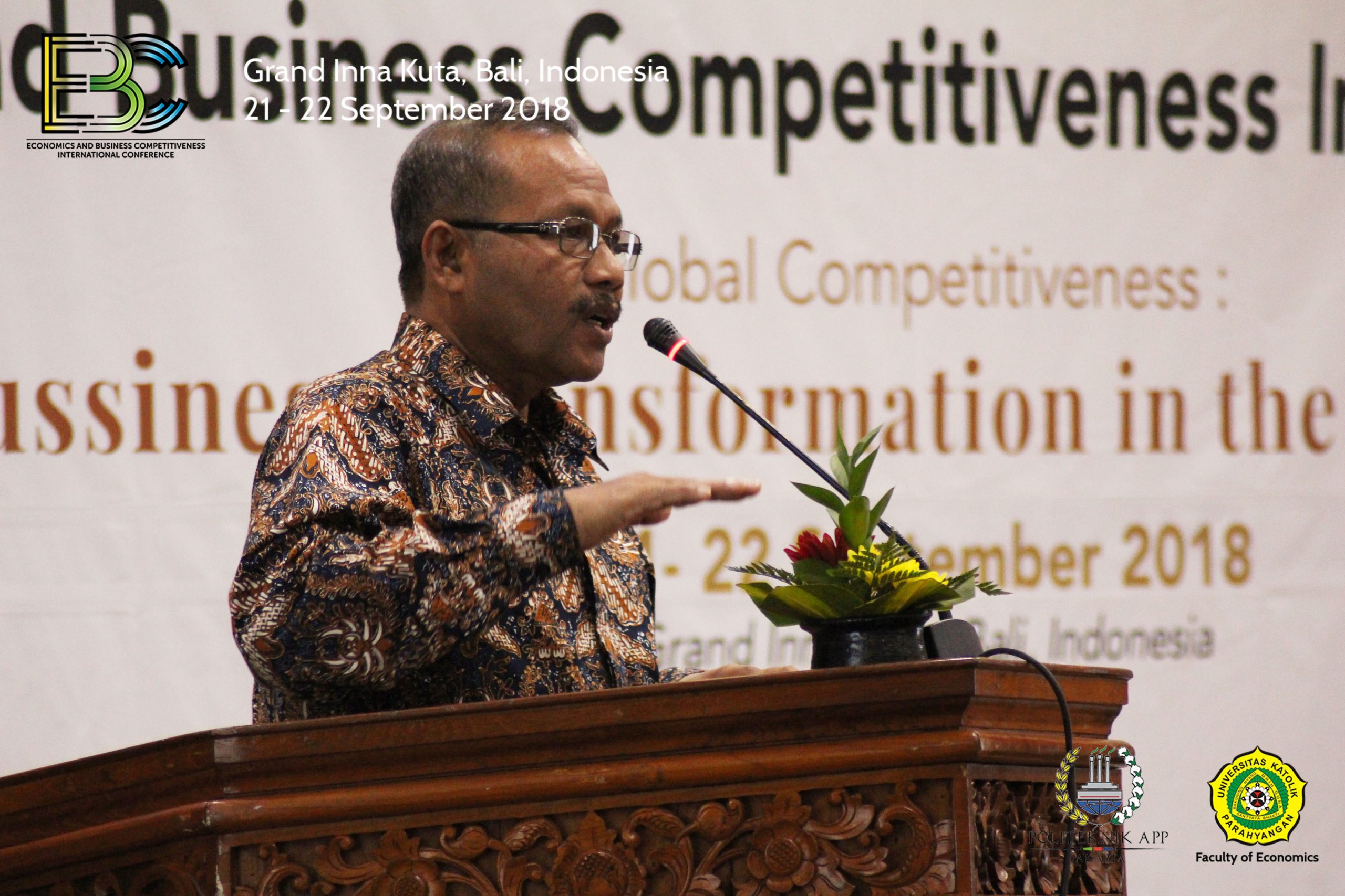 Fakultas Ekonomi Universitas Katolik Parahyangan (Unpar) Bandung bekerja sama dengan Politeknik APP Jakarta menggelar seminar bertajuk Economics and Business Competitiveness International Conference 2018 (Ebcicon 2018). Dengan tema besar “Global Competitiveness: Business Transformation in Digital Era”, seminar internasional ini dilaksanakan di Grand Inna Kuta, Bali, pada 21-22 September 2018.
