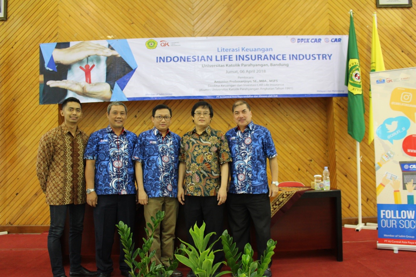 Jumat, 06 April 2018, bertempat di Aula Fakultas Ekonomi Universitas Katolik Parahyangan, telah diselenggarakan kuliah umum yang terselenggara atas kerja sama antara Fakultas Ekonomi UNPAR dengan PT Asuransi Jiwa Central Asia Raya. Kuliah umum kali ini mengangkat topik “Literasi Keuangan – Indonesian Life Insurance Industry”