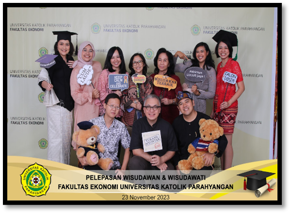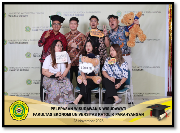 Acara Pelepasan wisuda diakhiri dengan makan siang bersama serta disajikan Photobooth untuk memberikan kenangan bersama calon wisudawan/wati lainnya, sehingga Pelepasan Wisuda II 2022/2023 Fakultas Ekonomi Universitas Katolik Parahyangan dapat terkenang dan terpatri kebahagiaanya di dalam hati sanubari. Akhir kata semoga para wisudawan dan wisudawati tetap bisa maju terdepan membawa dan mengharumkan nama almamater Fakultas Ekonomi Universitas Katolik Parahyangan dengan berbagai karya yang memukau. Jayalah Ekonomi Sepanjang masa. Salam FE UNPAR.