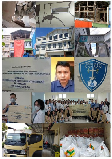 Puji syukur kepada Tuhan yang Maha Kuasa, karena Sekolah Kristen Kanaan saat ini sudah dapat membangun & merenovasi kembali gedung dan sudah mulai melakukan aktivitas pembelajaran seperti biasanya sekalipun belum tuntas renovasi gedung. Civitas Akademika & Alumni Fakultas Ekonomi Universitas Katolik Parahyangan hanya dapat membantu dengan memberikan sedikit bantuan berupa uang tunai kepada keluarga Almarhumah Jurianti Nadeak.,S.Pd. sebesar Rp 4.600.000,00 yang terkumpul dari semua pihak dan juga sembako bagi guru-guru, staf Tata Usaha, Satpam, dan orang-orang sekitar yang terdampak gempa di Cianjur.