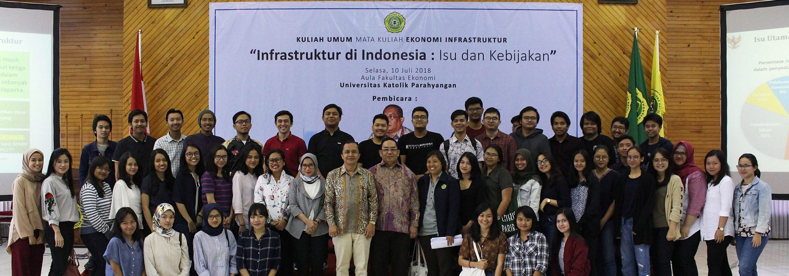 Infrastruktur di Indonesia: Isu dan Kebijakan” menjadi tema besar yang dipilih oleh Progam Studi Ekonomi Pembangunan UNPAR dalam gelaran kuliah umum terbarunya. Mahasiswa yang mengambil Matakuliah Ekonomi Infrastruktur menjadi peserta kuliah umum ini.